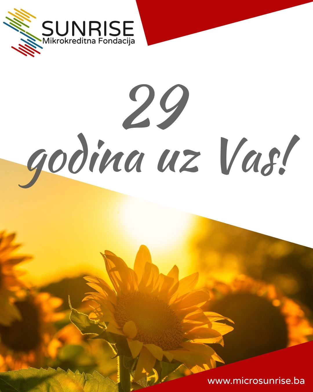 Danas Mikrokreditna fondacija SUNRISE obilježava 29 godina uspješnog poslovanja, predanog rada, rasta i zajedničkih uspjeha!